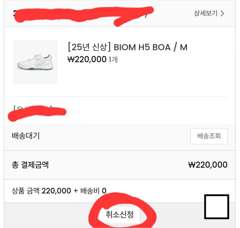 홈페이지에서 주문해도 취소요청 버튼 있네요