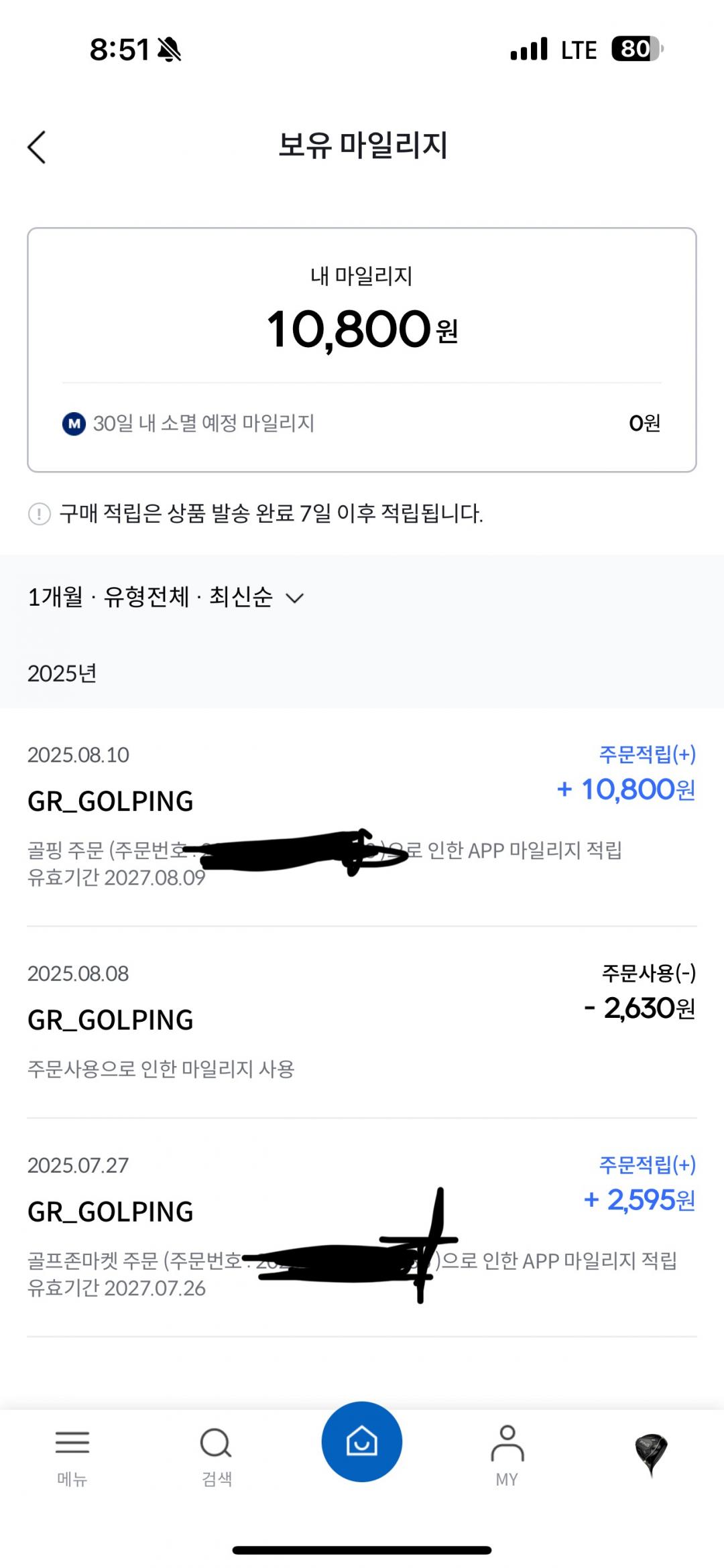 골프존마켓 앱에서 마일리지 증정 이벤트 드라이버를 샀었는데요.