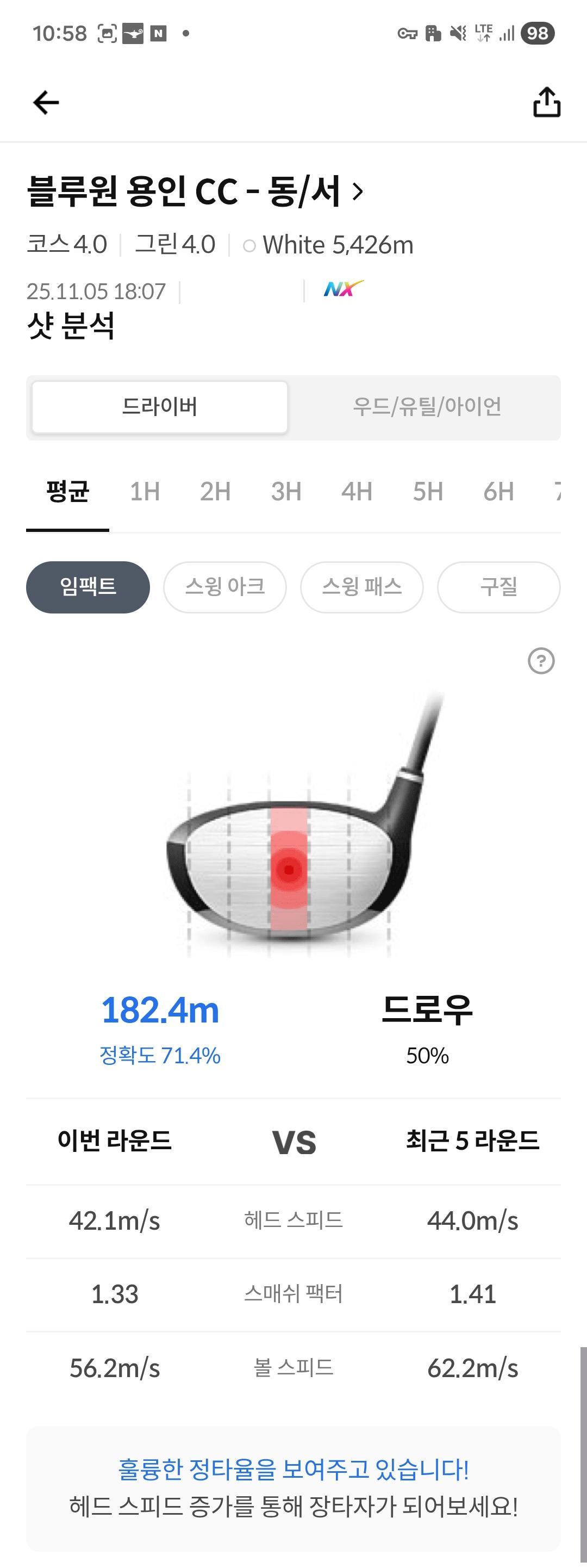 가끔씩 70찍으면 드라이버 소리가 다릅니다 문제는 다음날 허리도 아파여ㅠㅠ