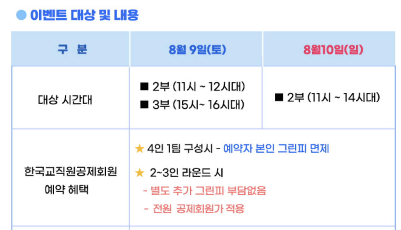 네..맞습니다. 전화로 확인했슸니다. 4인 경우 예약자(회원) 그린피 면제 혜택입니다. 설레발(?) 쳤지만 그래도 혜택이 크긴 크다고 봅니다^^