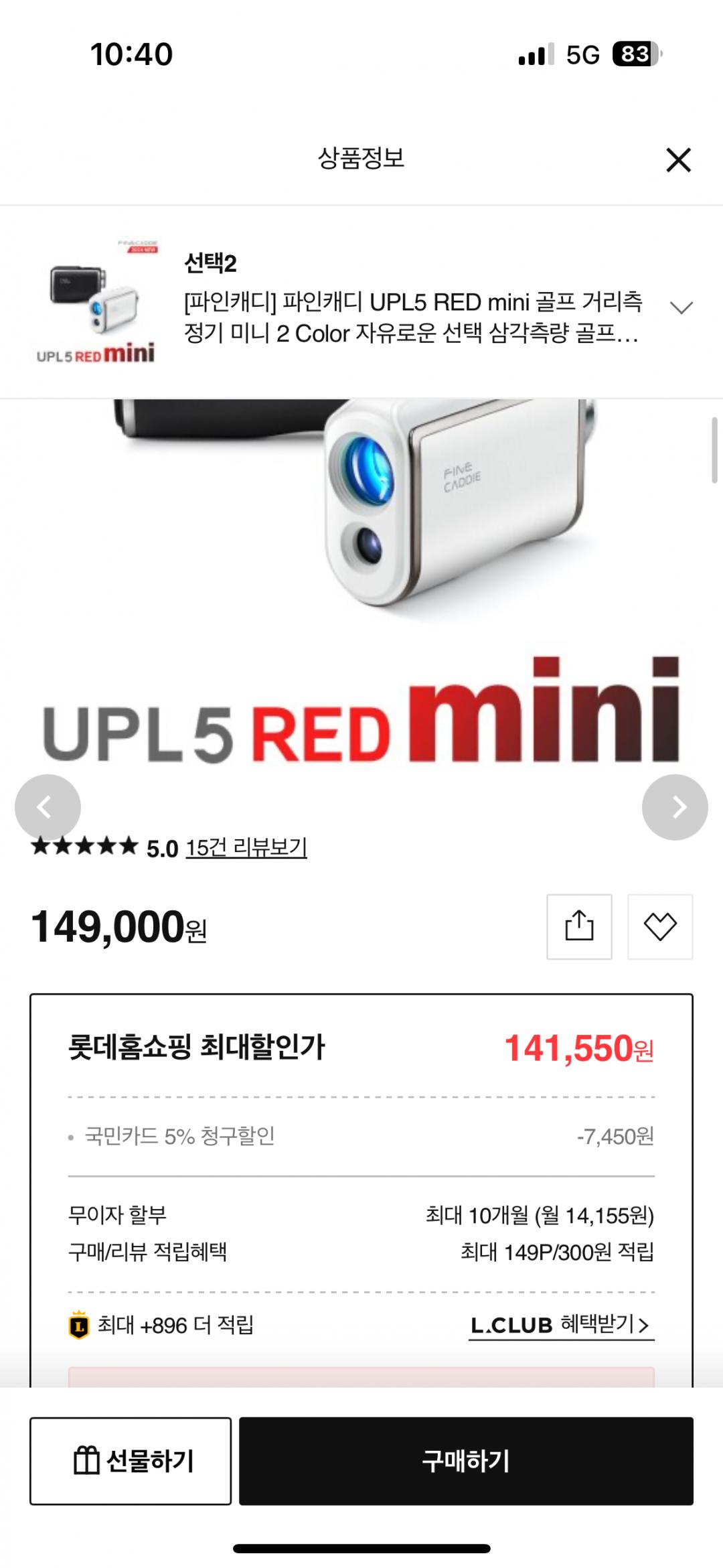 파인캐디 UPL5 RED mini 골프 거리측정기 미니 2 Color 자유로운 선택 삼각측량 골프거리측정기