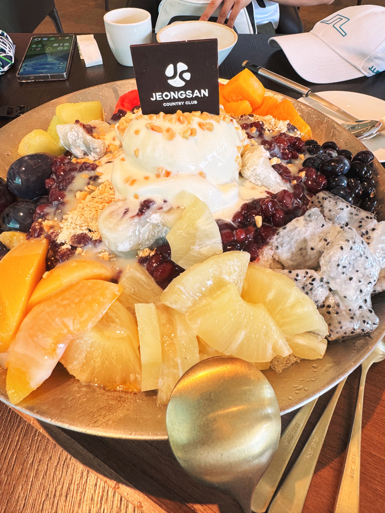 9홀 마치고 너무 더워 팥빙수 시켯습니다. 큼지막하니 좋네요.. 테이블마다 다 시킨듯 보입니다.