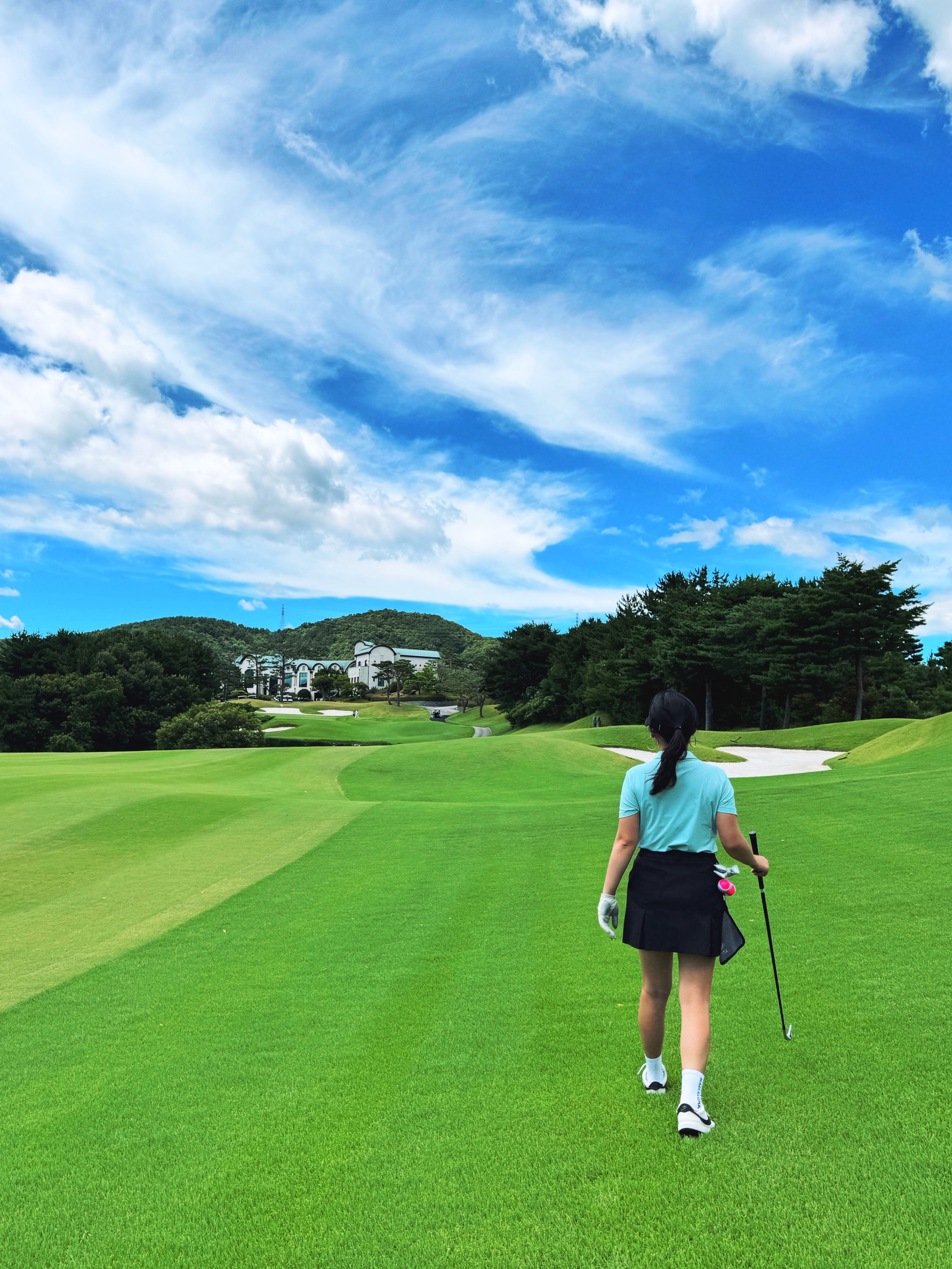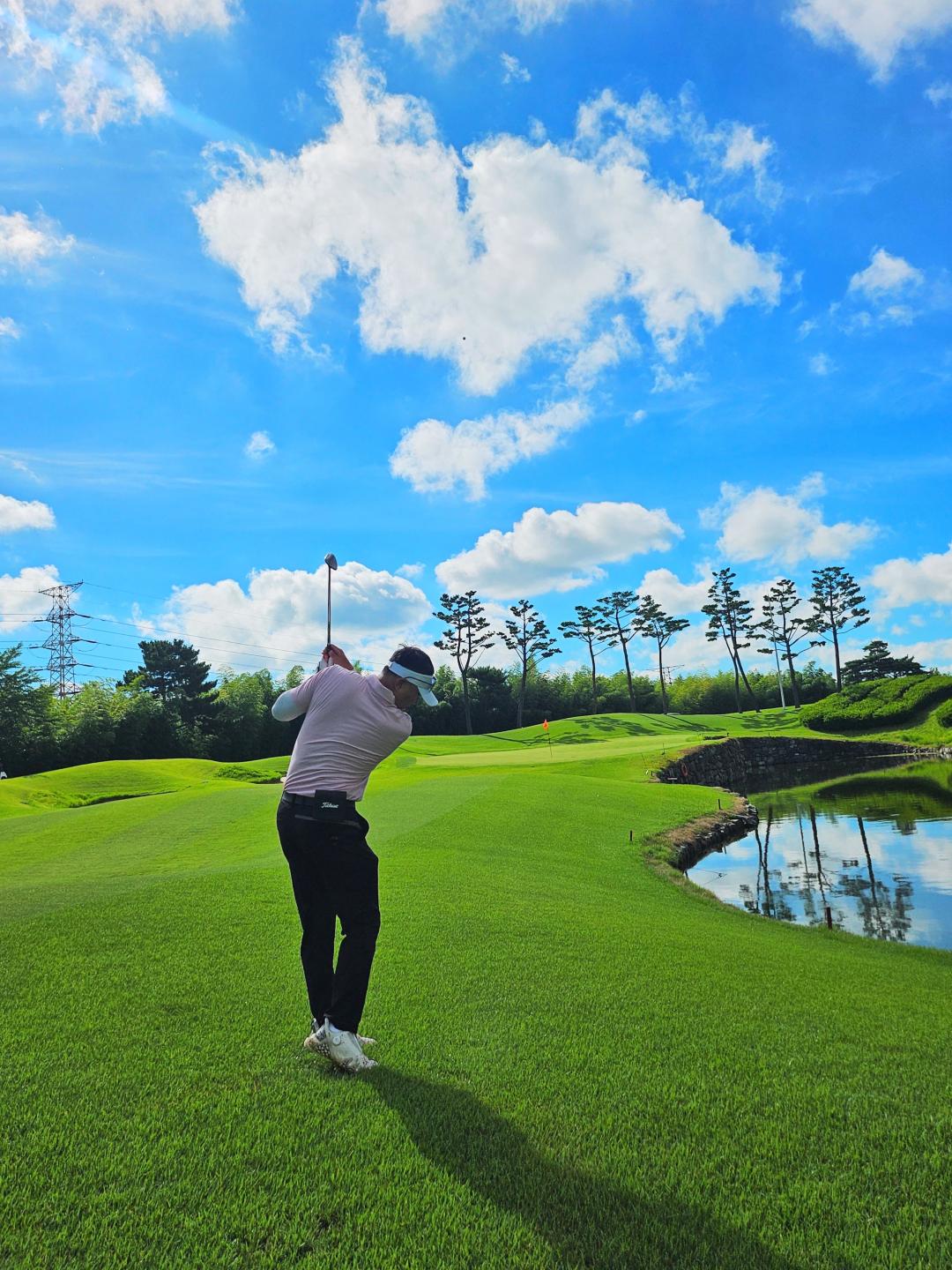 ㅎㅎ 저도 38도 쨍쨍한 날씨와 함께  플레이 후  살아돌아왔습니다. 드라이버 잘맞는데 이상하게 거리는 잘안나오네요. 꽝꽝얼린 음료수 우산 얼굴패치와 복면 얼음주머니 그외 별별 아이템과 함께 했습니다.  온도빼면 하늘이 너무 이뻤습니다.  아.  내일도 역시 출동합니다.  뭔가 슬픕니다.  ㅠㅠ