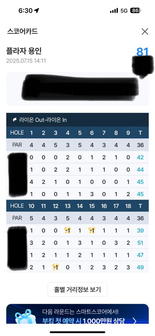 그런 상황속에서... 후반 첫홀..4명중 3명이 티샷 다 나가고...그 그래도 저는 81개를 쳣다는..아름다운 마무리.