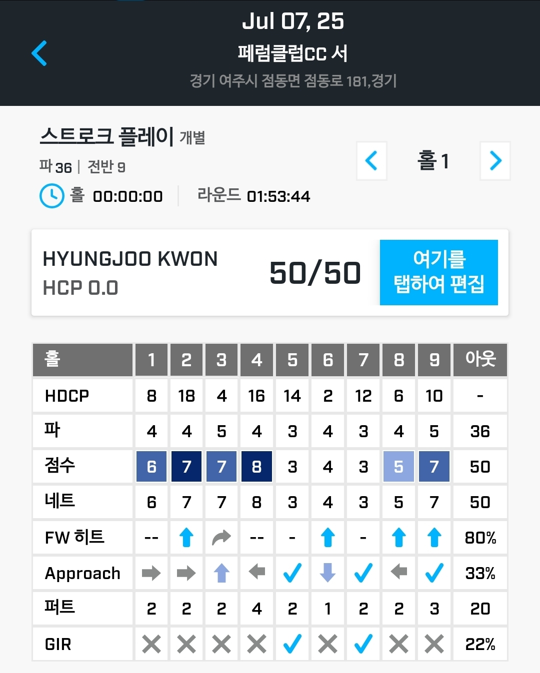 어프로치하기도, 퍼팅하기도 참 어려웠습니다.