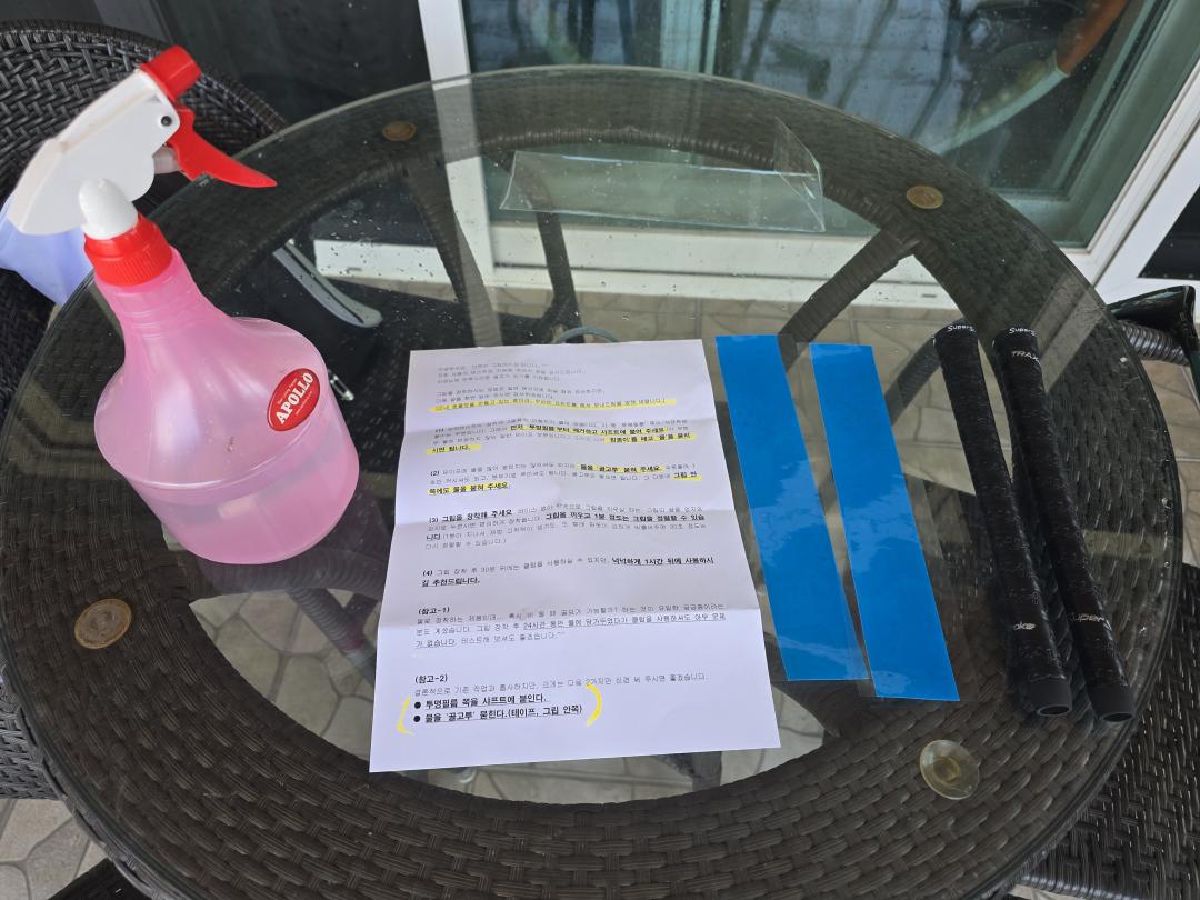 휘발유 없이 물만 사용하니 너무나도 간편하게 교체했습니다... 바로 연습장 가서 쳐 봤는데 그립이 돌아가지도 않고 바로 사용 가능했어요..