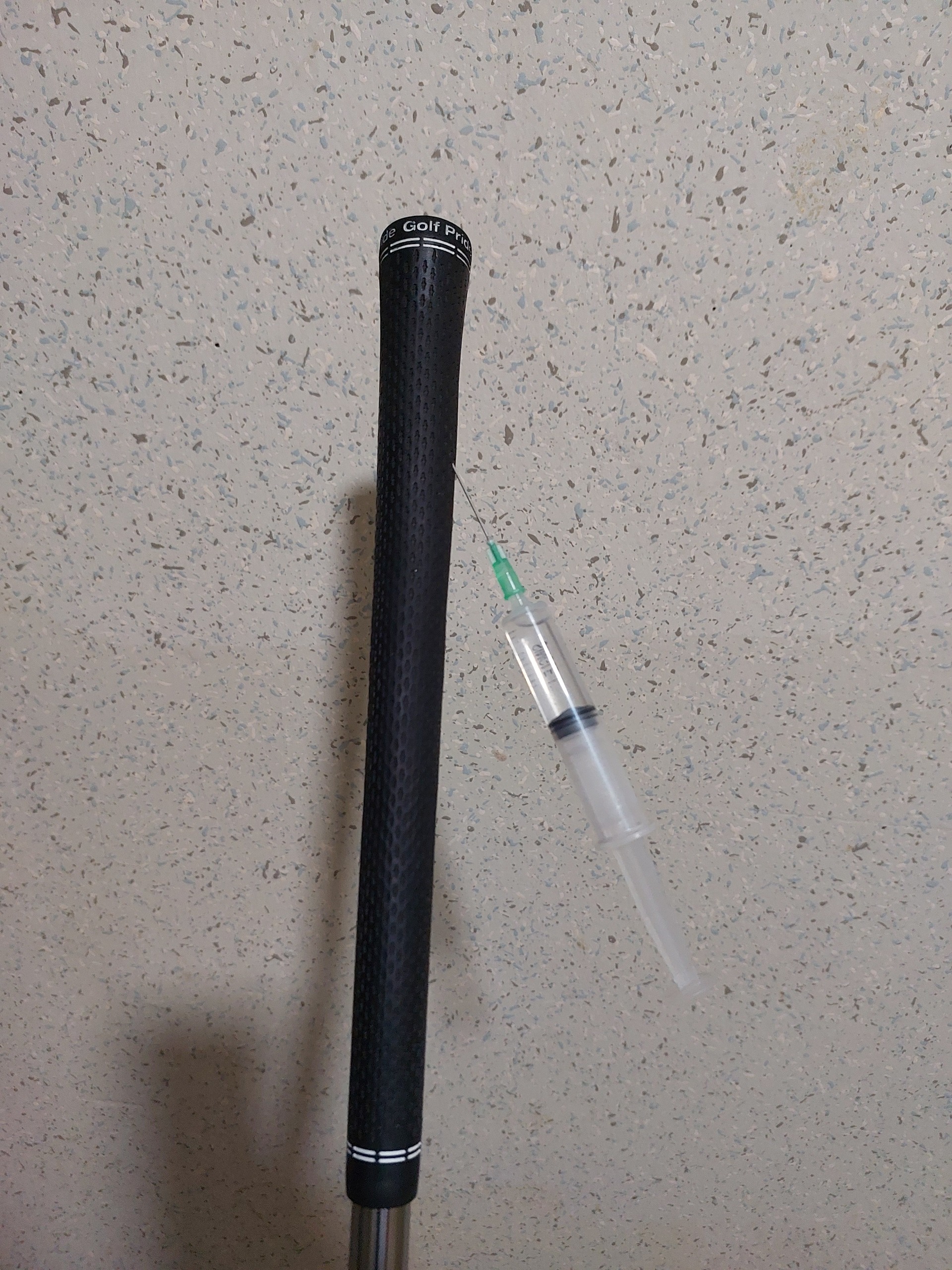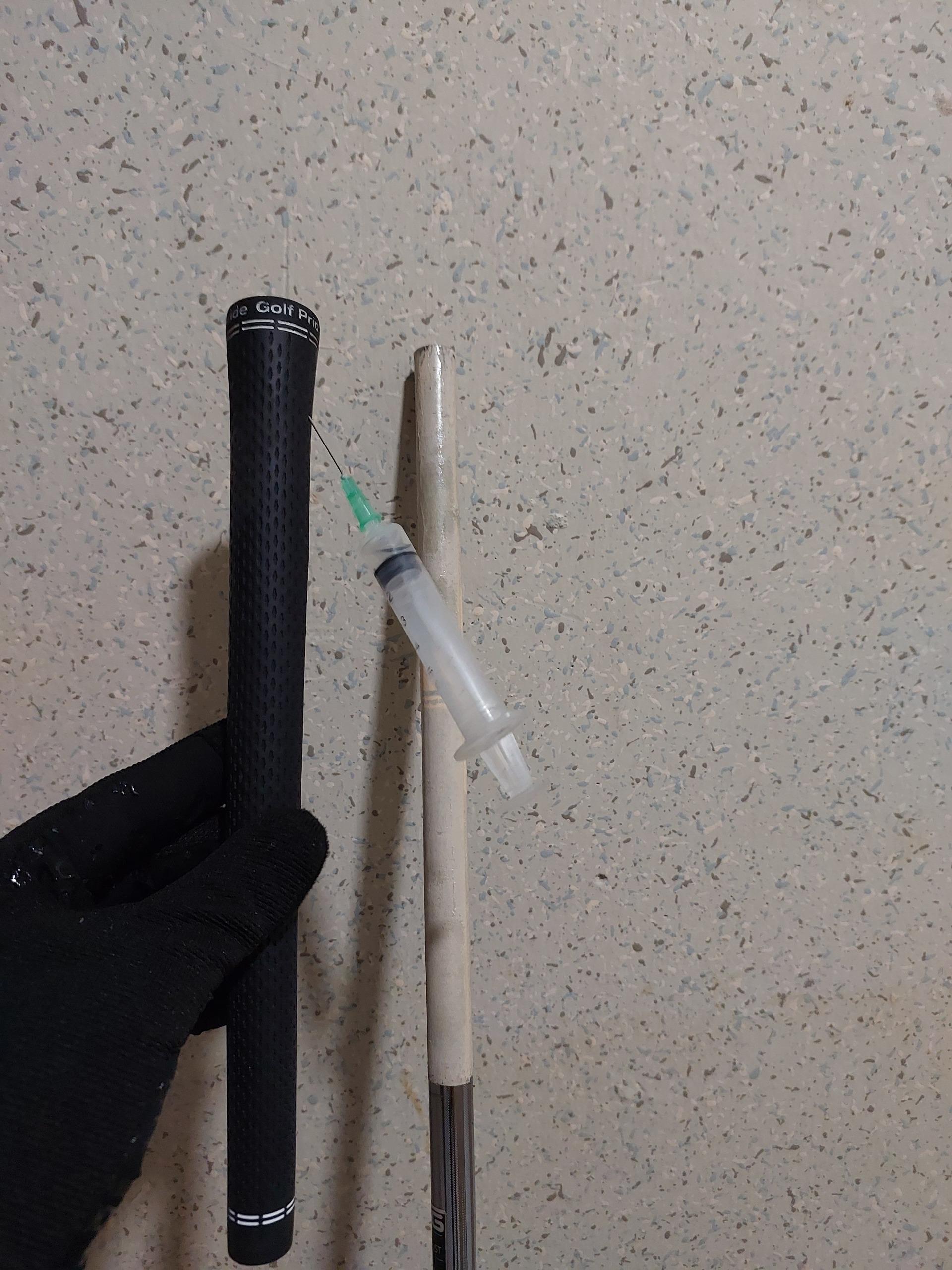 주사기로 하면 그립테이프 손상없이 그대로 빠집니다. 그립안에 테이프가 잘려나가서 붙어있질 않아요.