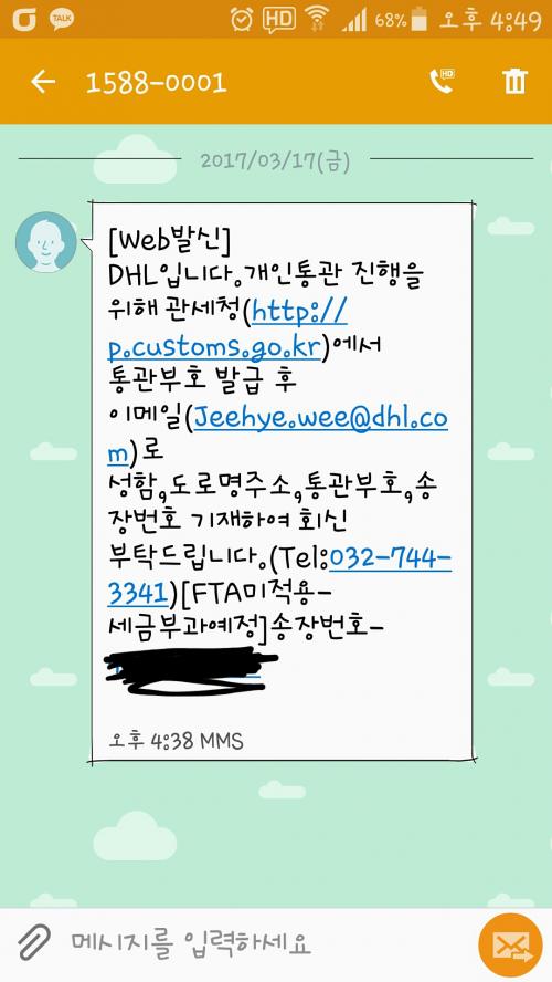 Dhl 에서 이런문자가 날라오네요;; 이런경우는 처음이여서ㅜ