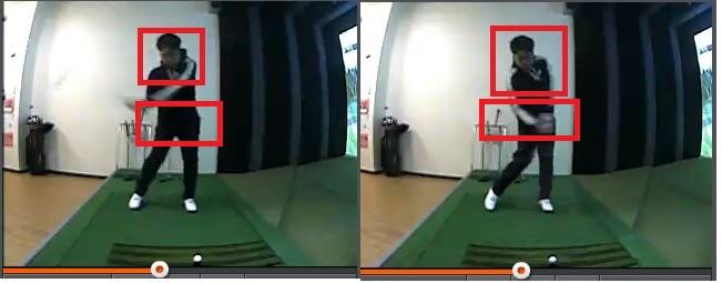 임팩 이후에 어깨가 들리는거 같으면서 몸이 휘청 거리는 느낌입니다..