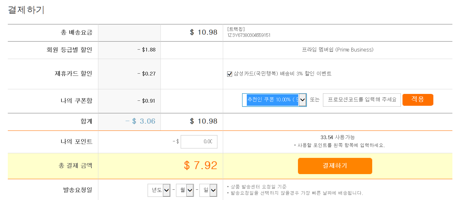 10.98달러에서 3.06 마이너스라니.... ㄷ ㄷ ㄷ  시계단품배송 그거 같네요 비용이 ^^;