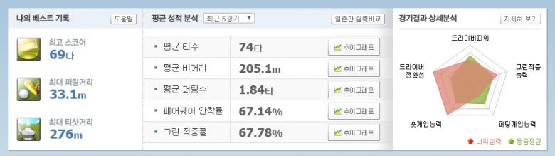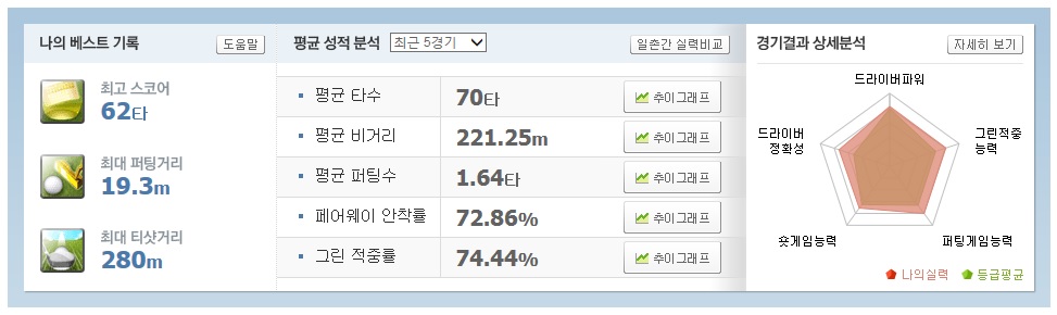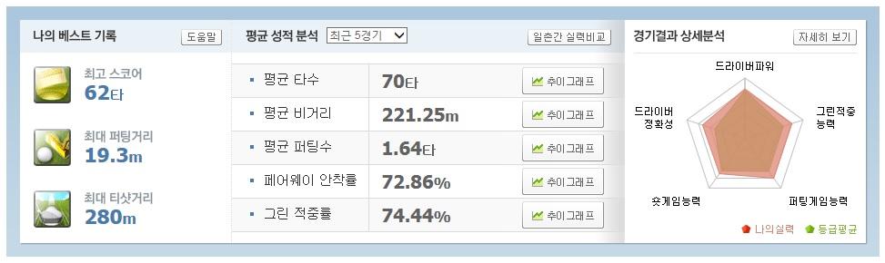 저도 부럽습니다.. 평균비거리 221m에 FH/GIR 70% 넘어가시니.. T_T