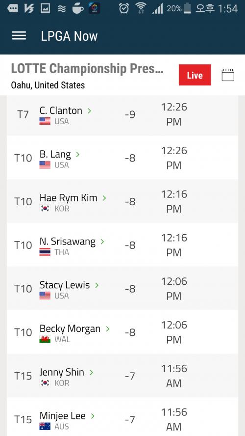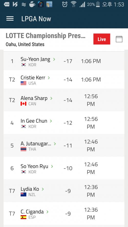 류소연이 리디아고에 0.91 포인트차이인데 현재 -10 으로 6위입니다. 리디아고에 한층 더 추격이 될거라 봤는데