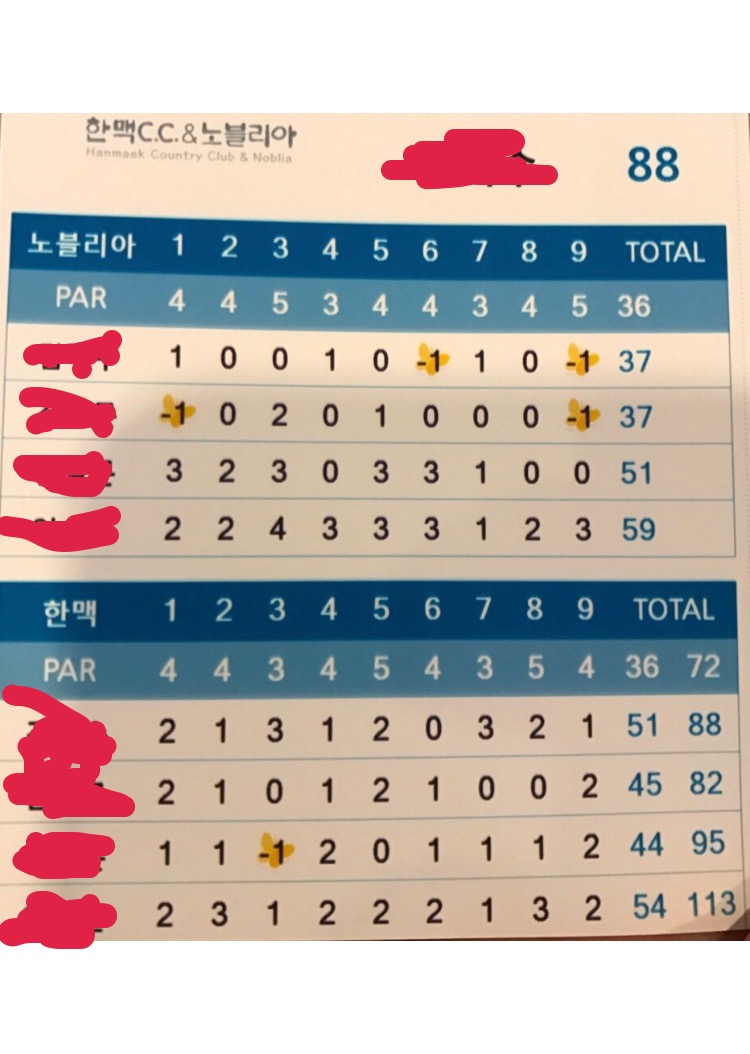 전반 후반 다른분이 되셨네요 ^^* 저도 한국라베때(응?) 전반 3오버..후반 *#$%&&@#%* 토탈 88타 나왔어서 그 기분 압니다 흑 | ||