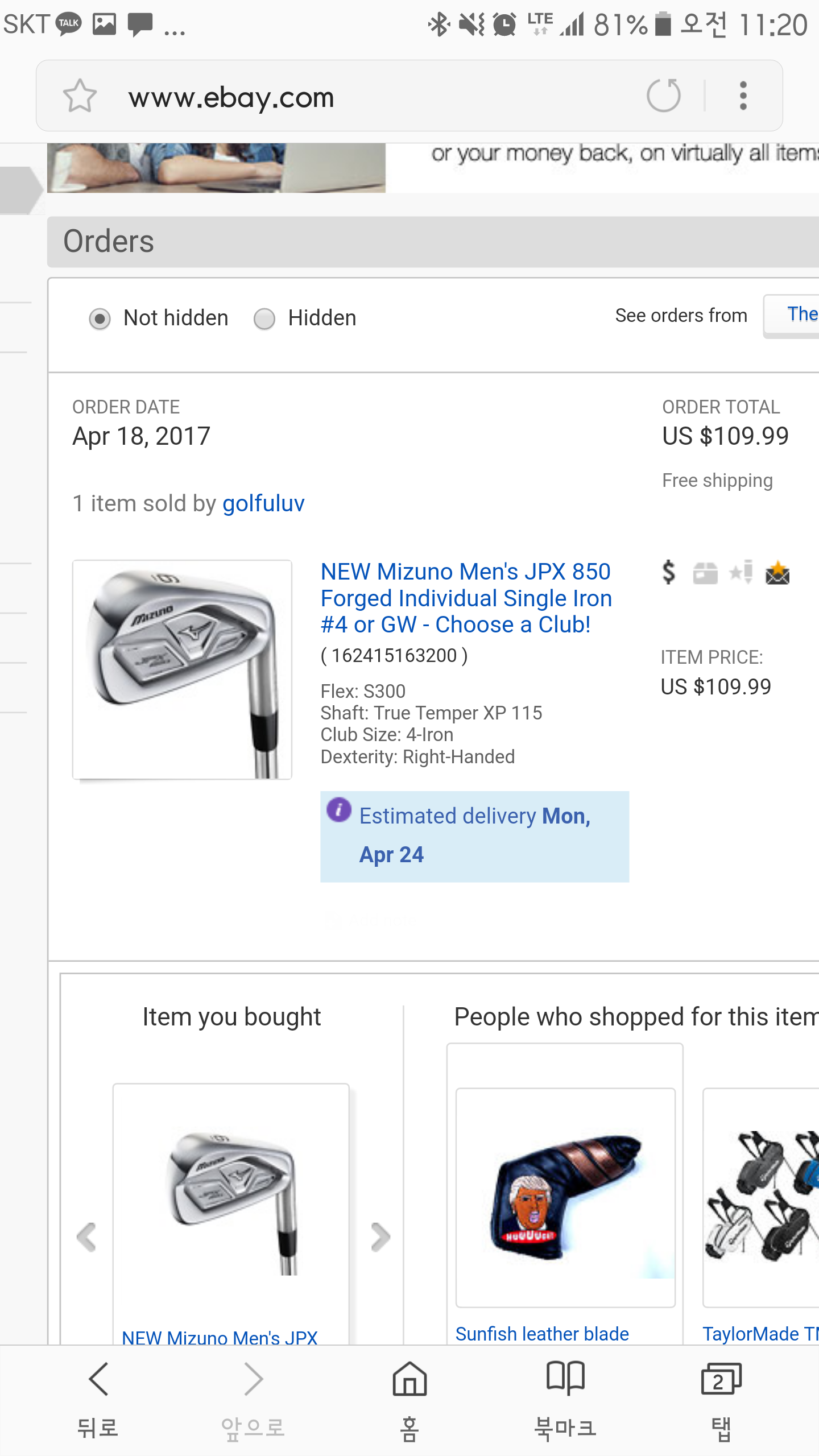 850 us스펙 true temper x105 s300 6아이언 사용중입니다