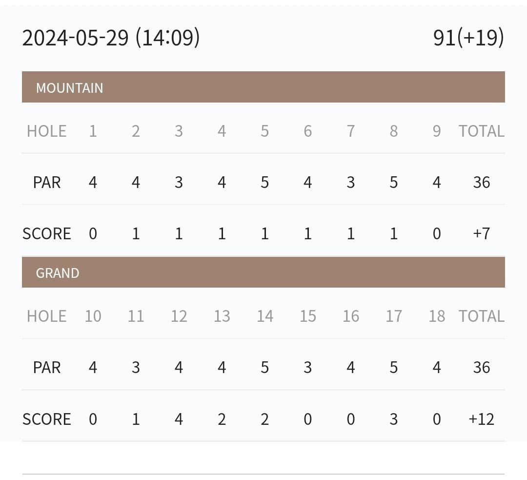 아쉽게 91타의 성적을 거뒀습니다 ㅜㅜ