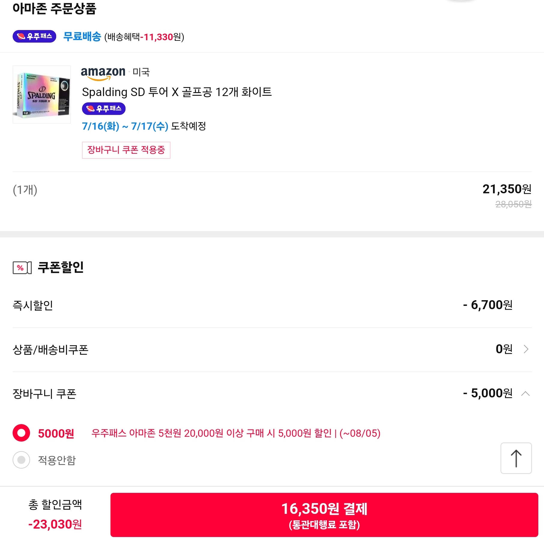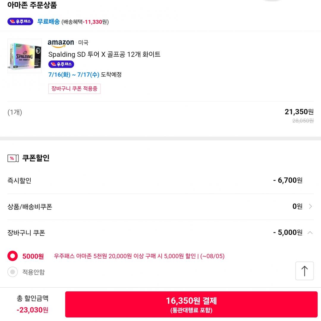 쿠폰 먹이고 16,350원에 구매했습니다.