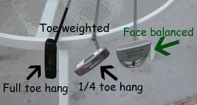 3. 페이스가 지면에 직각인 즉 토우가 지면을 향하는 풀 토우 행 퍼터 (full toe hang putter)