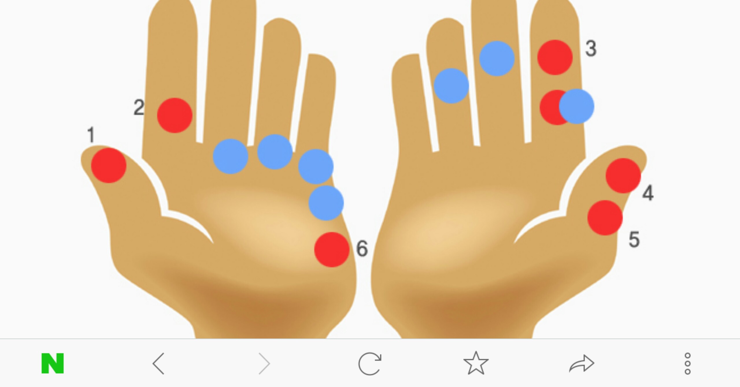전 왼손 4번째 손가락과 손바닥 연결부분. 오른손도 4번째 손가락 첫 마디부분과 아래 손바닥과 연결 부분. 이네요 |