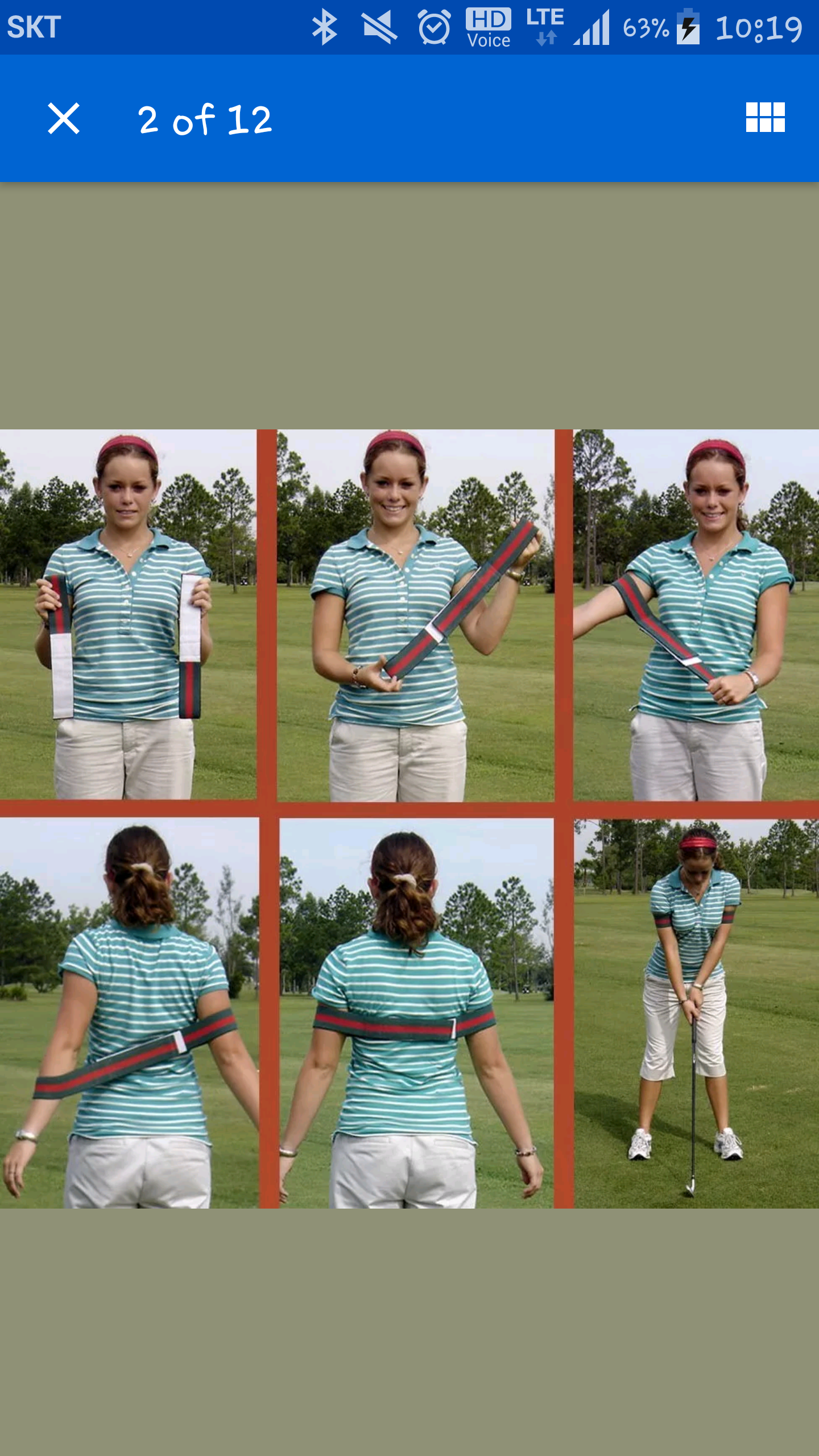 몸통이랑 팔을 아예 묶어버리기 때문에 몸통 스윙 연습에 최고라 생각합니다.