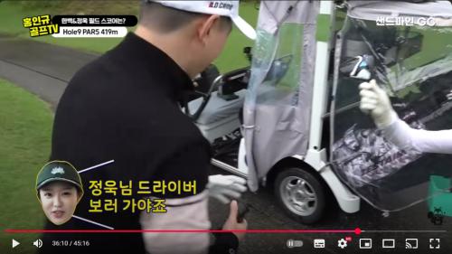 캐디님한테 티샷하고 드라이버 건내주는 찰나에 보니까 익숙한 형상이 지나가길래