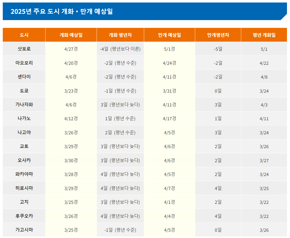 제가 참고하는 사이트는 주기적으로 벚꽃 개화 및 만개 시기를 업데이트해주는