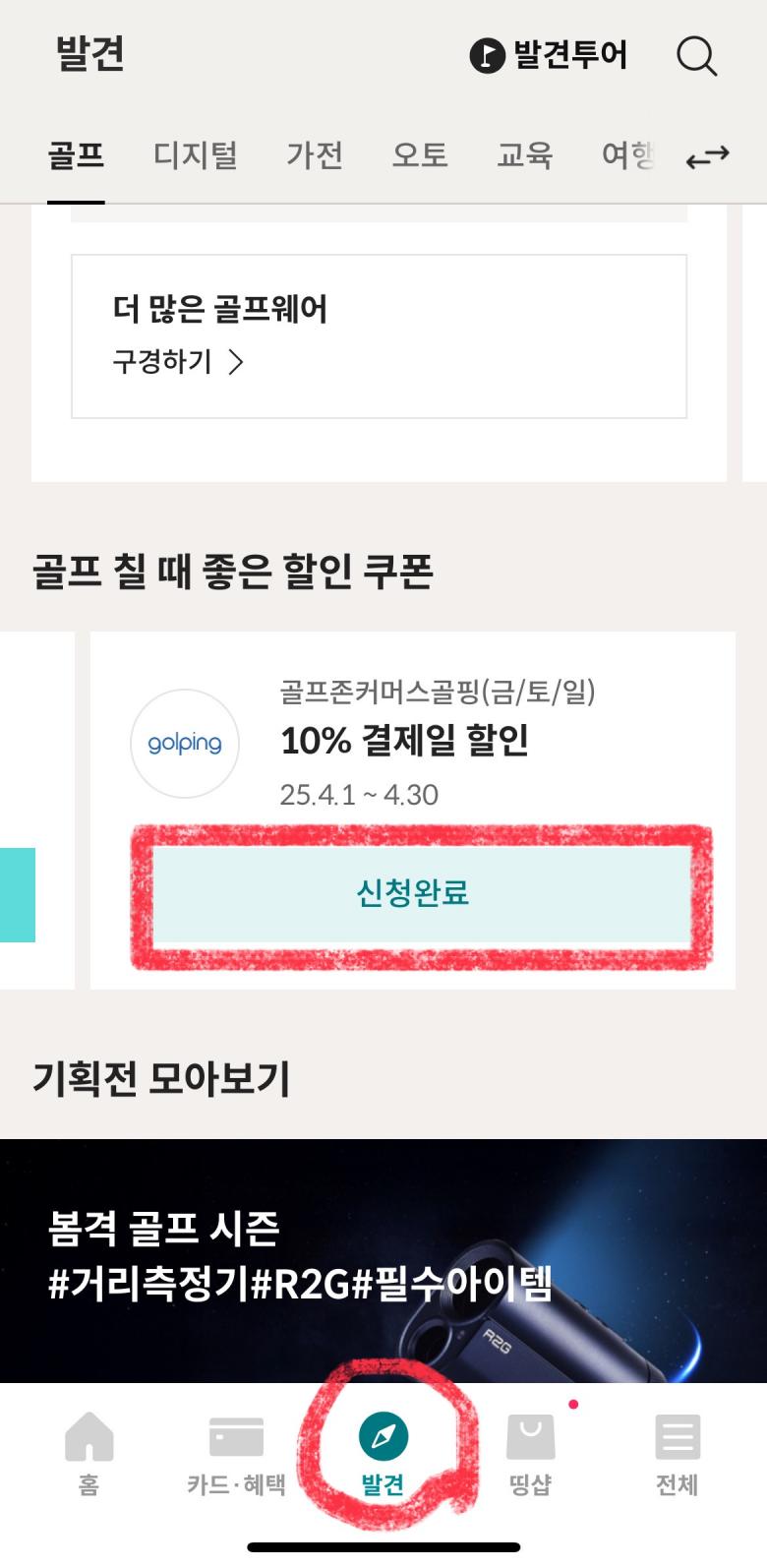 골프존마켓이나 골핑에서 롯데카드 즉시할인도 청구할인도 보이네요.