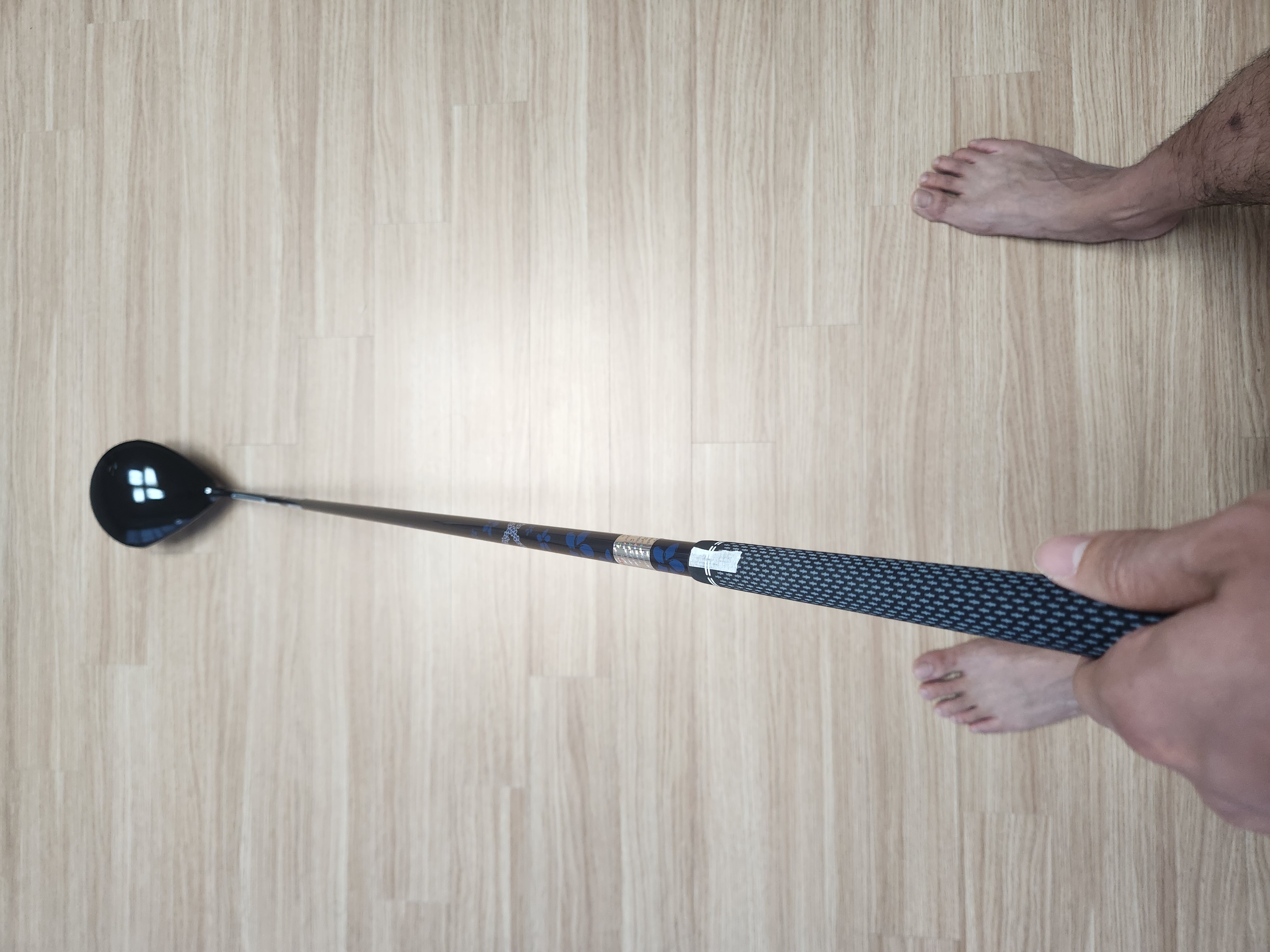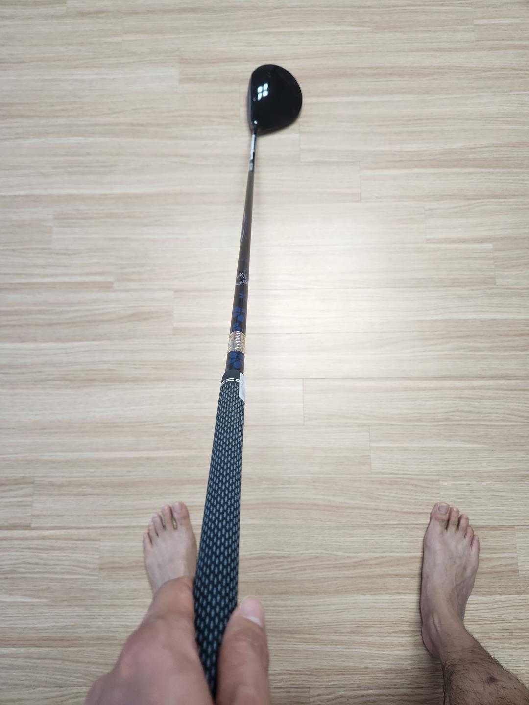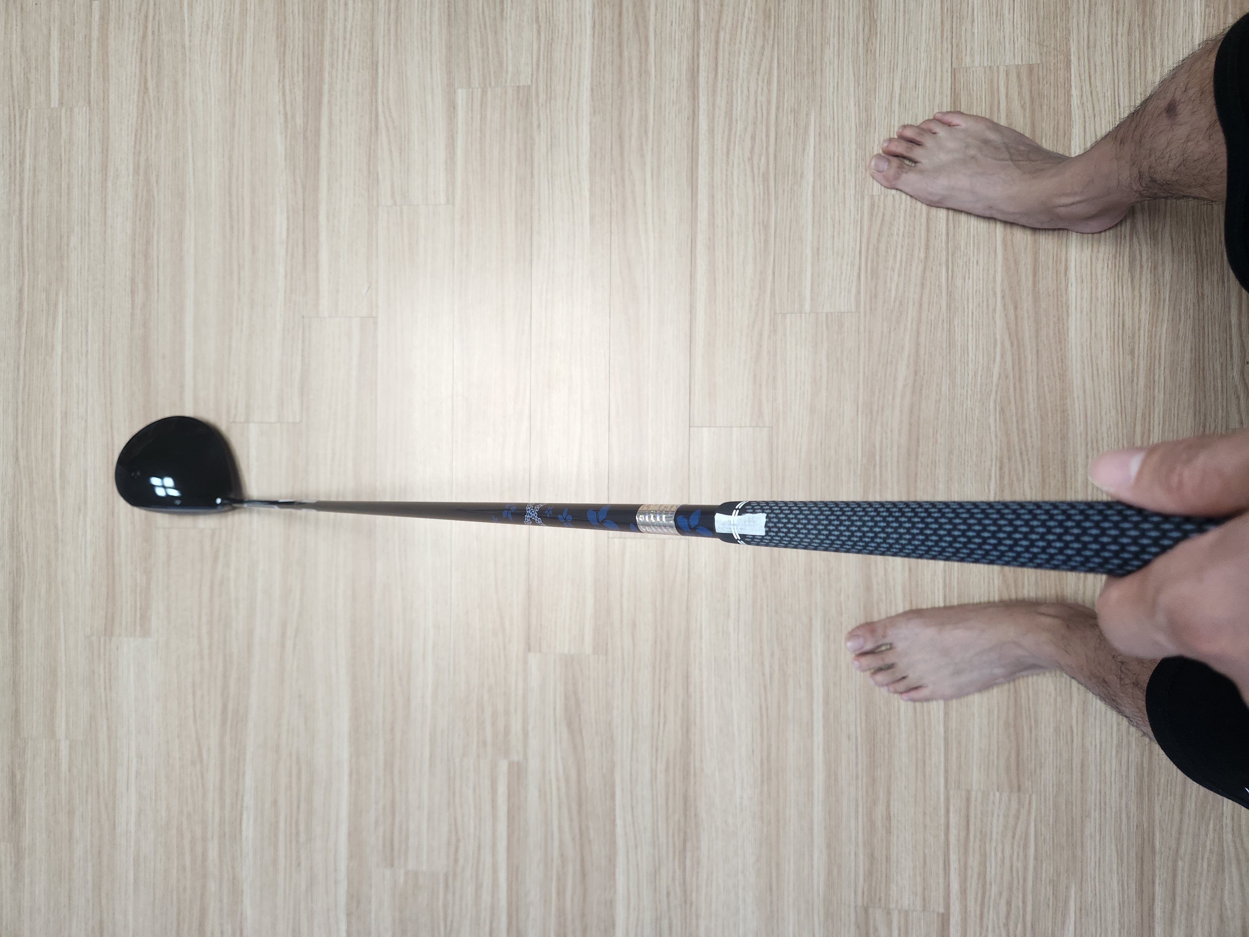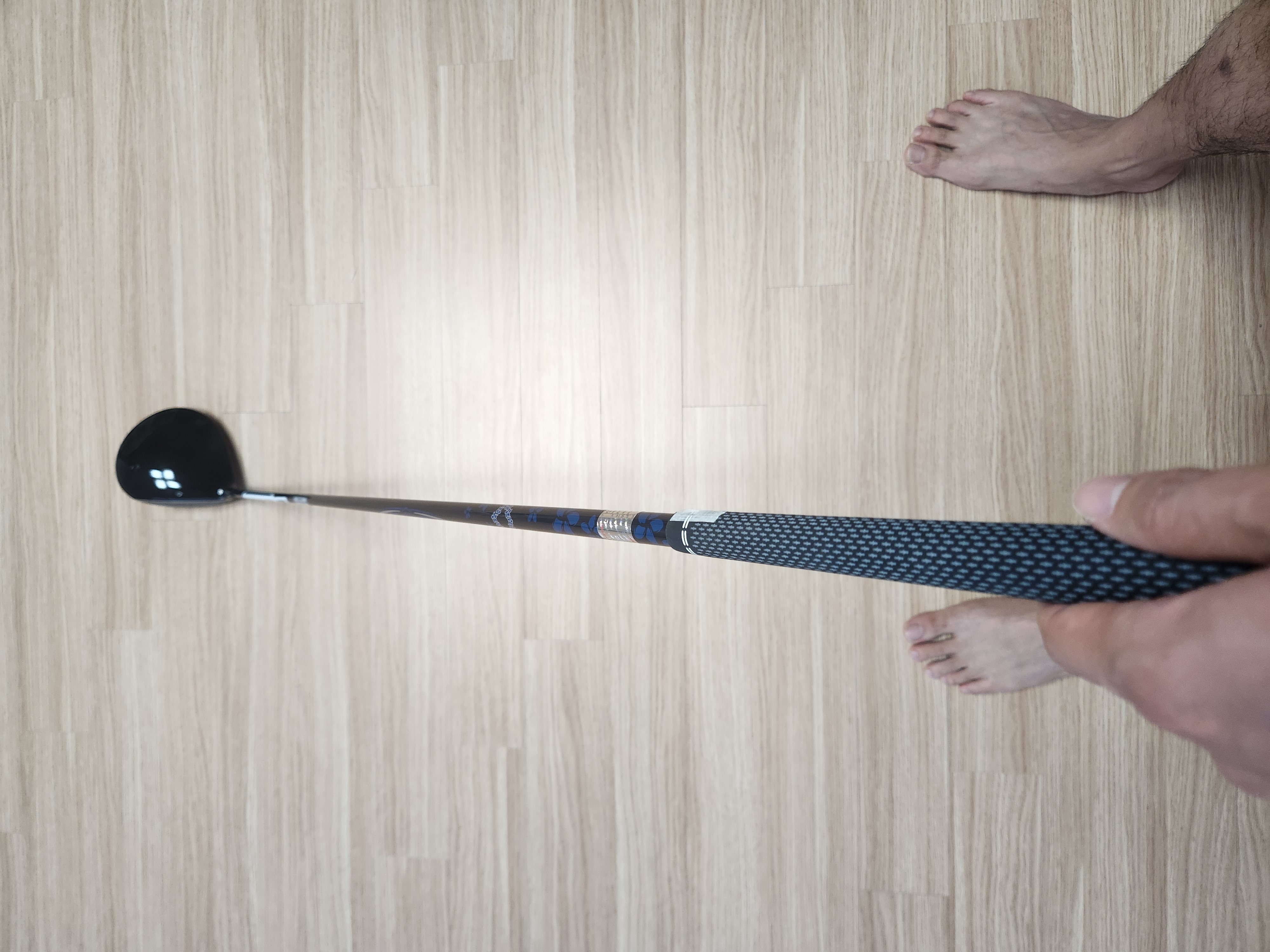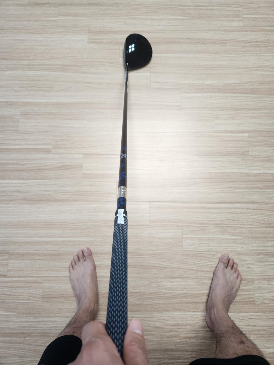 샤프트 끝이 왼쪽 허벅지 사타구니쪽(사진이 조금 핸드퍼스트되게 잘못찍었네요