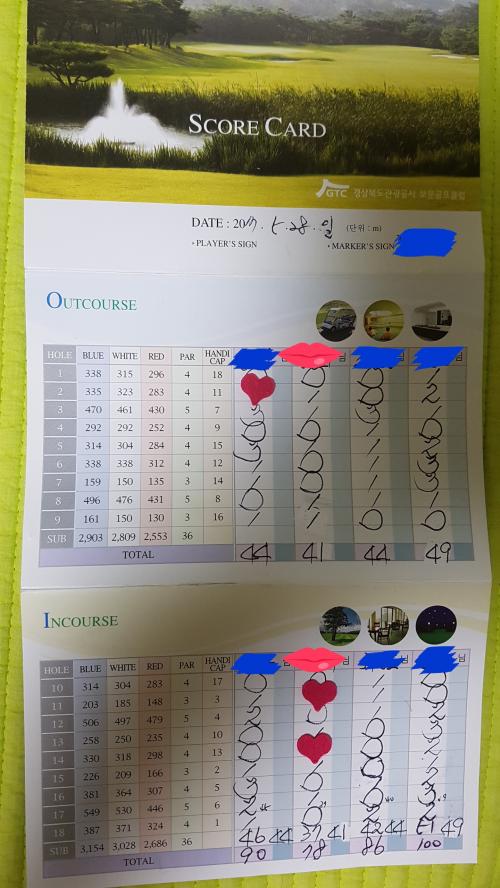 멋지세요. 저도 꾸준히 연습하는데 비해 스코어가 줄지않아 실망 중이었는데
