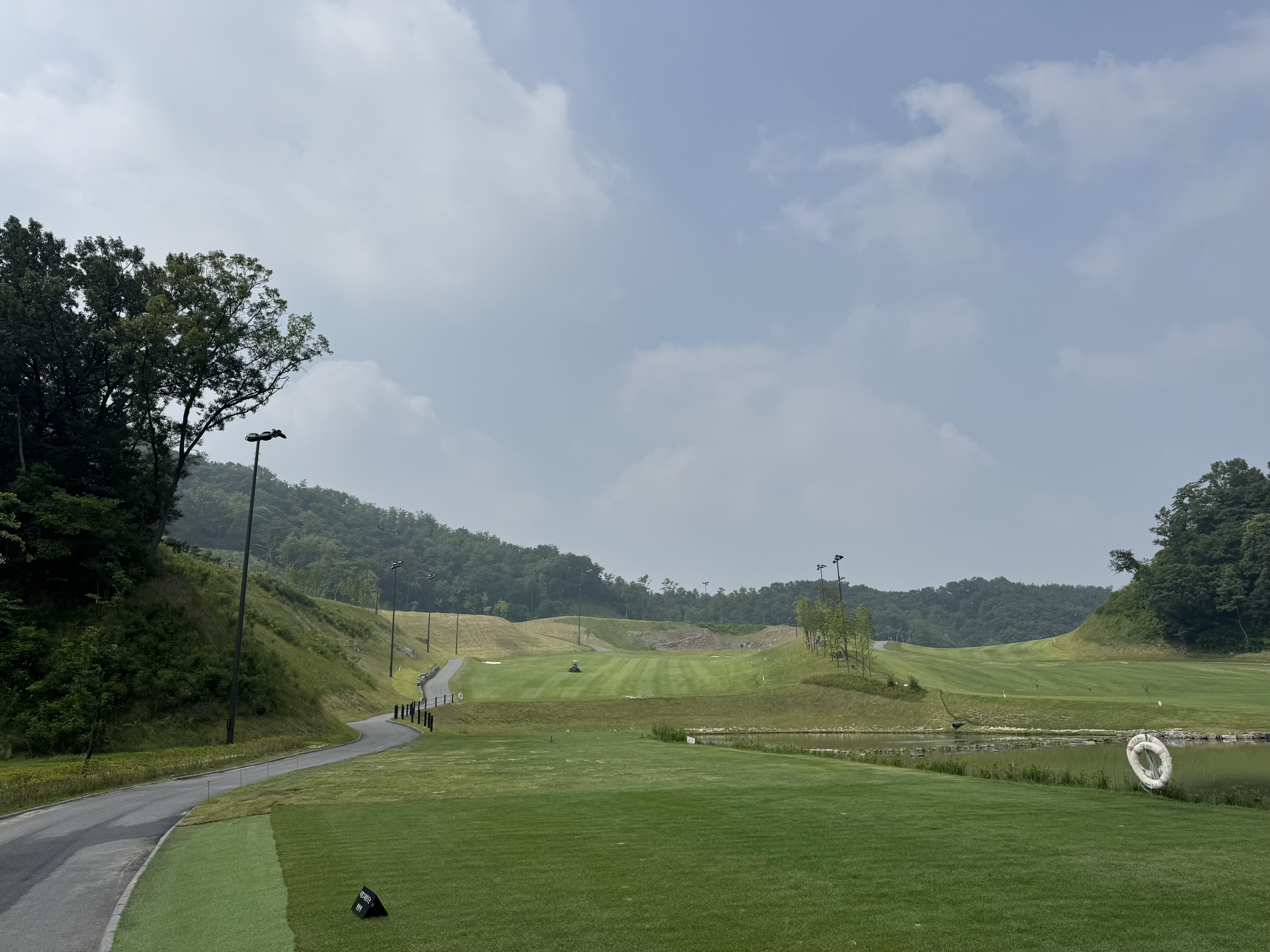홀과 홀 사이가 좁아서, 옆집에서 공이 날라 올 수 있는 단점이 있고, 파5가 짧아서, 세컨만 잘 치면 투온해서 이글을 노릴 수 있습니다.