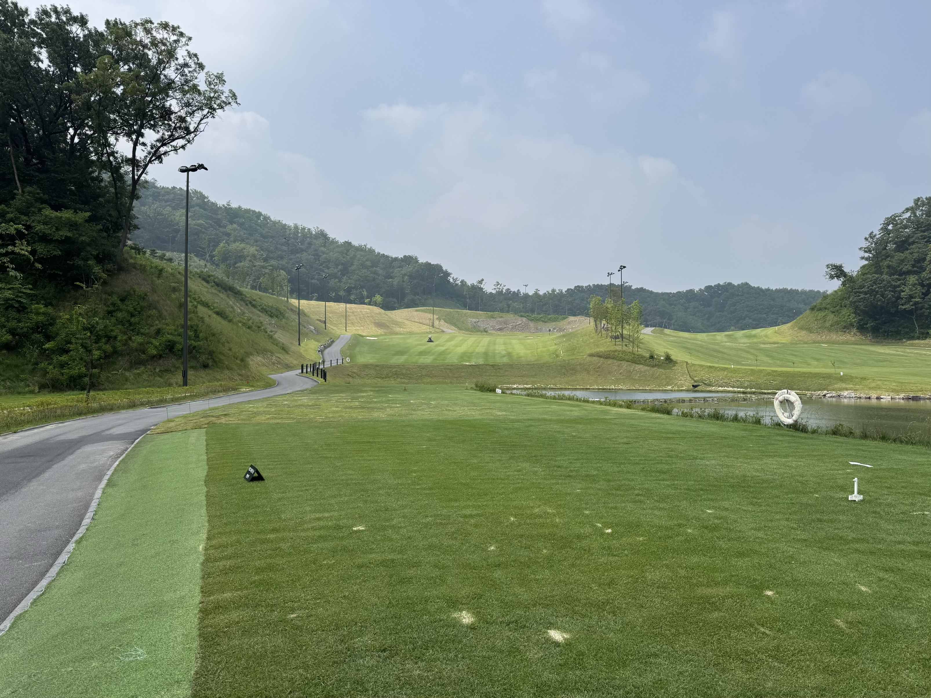 페어웨이는 아주 넓고 법면타고 잘 내려와서 잘 안죽습니다. 상태는 군데군데 죽은 잔디 빼면 나쁘지 않음.