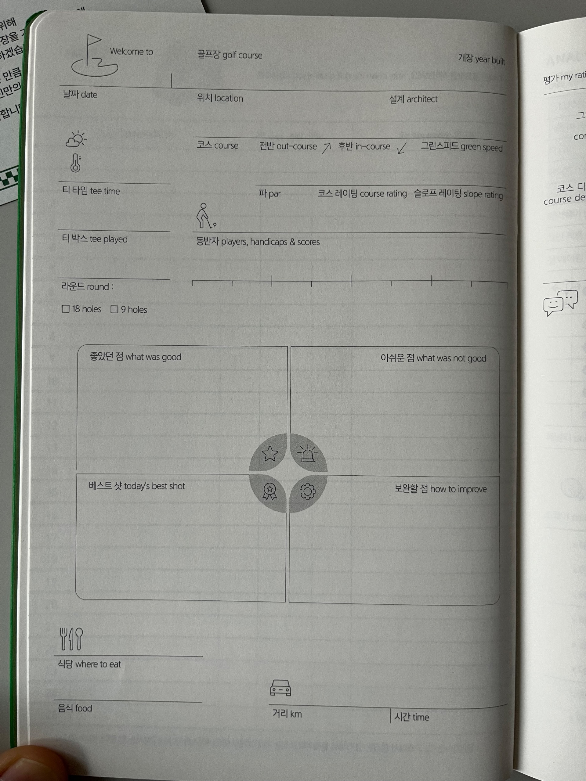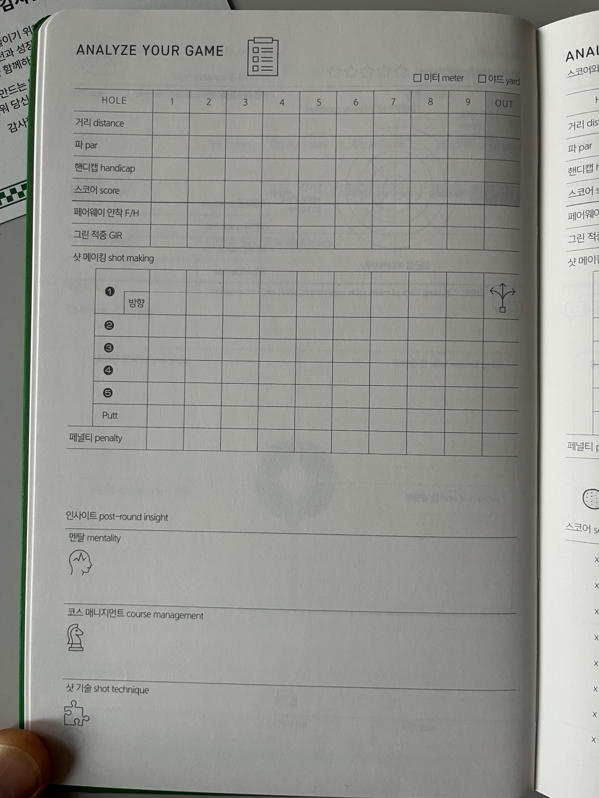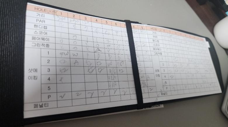 ㅎㅎ.. 스코어카드수첩이라고 치면 껍데기는 그매가능하시고 속지는 직접 만들어서 쓰고있습니다 ㅎㅎ | ||