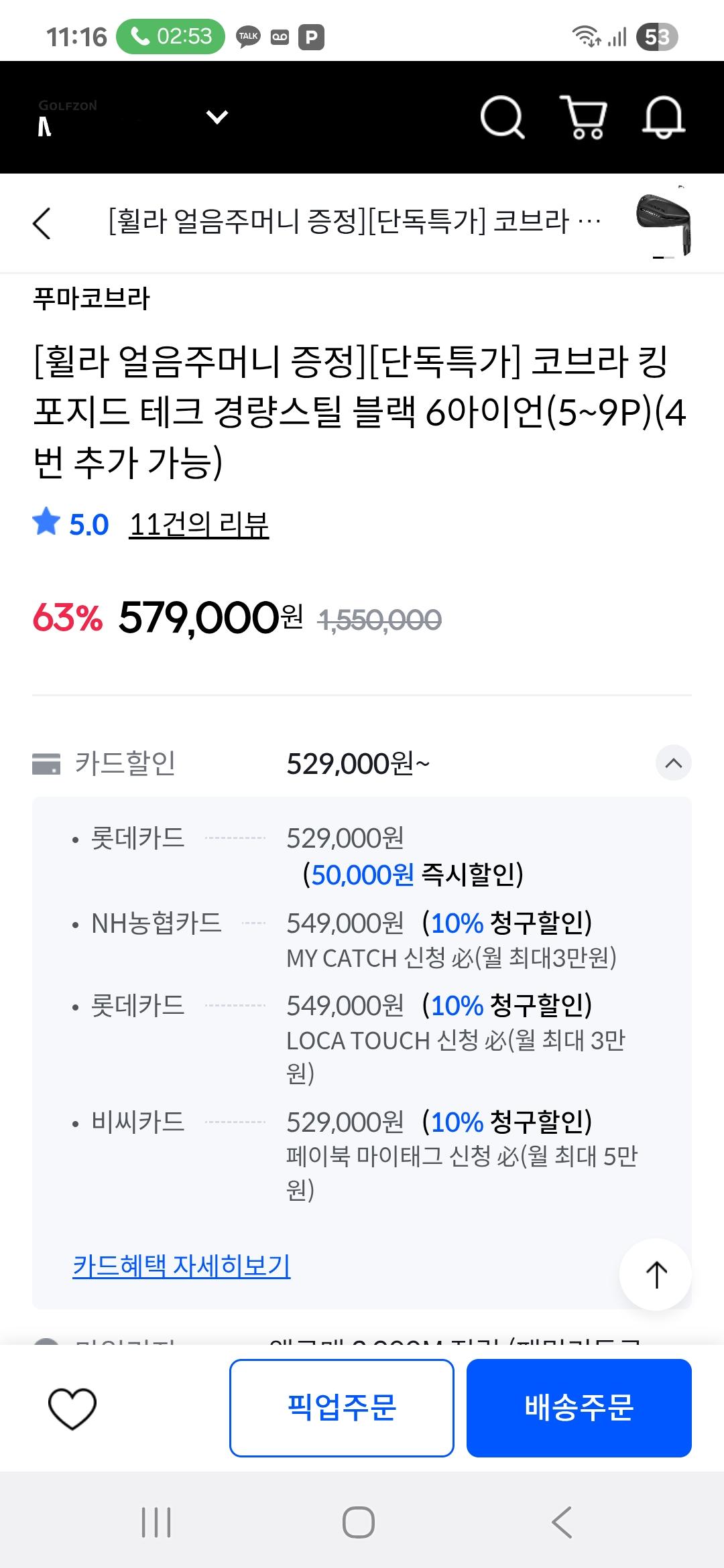 앗.. 코브라 아이언 7% 쿠폰 이제 안되네요 (어제 7% 쿠폰은 되었는데.. )