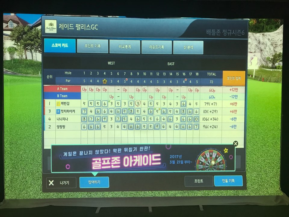 금일 낮에 골포 보다가 우연히 영이랑님의 골프존 쿠폰 나눔에 당첨되어 방금 지인과 한게임 하고 왔습니다!!