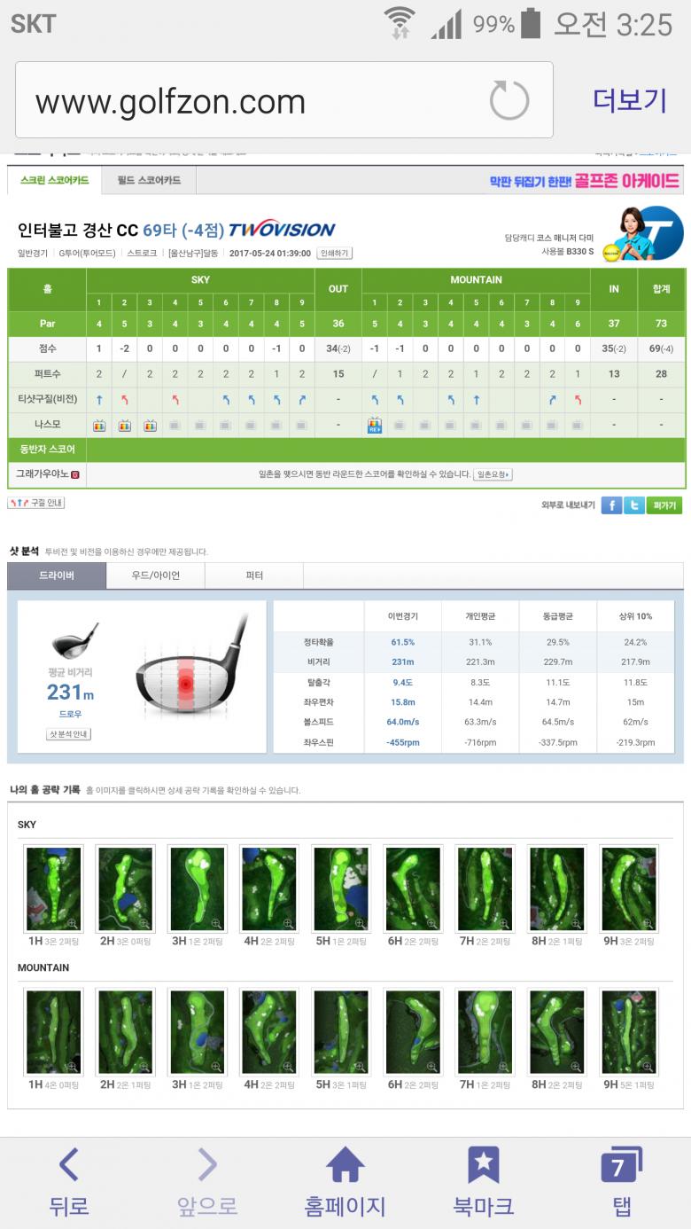 큰머리님은 탄도가 낮으신가봐요 탄도 낮은 사람들이 스크린과 필드가 유사하더라구요 |