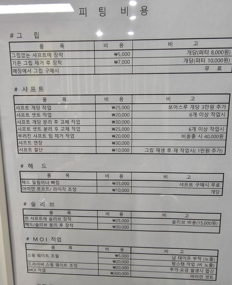 기존 클럽하고 샤프트 가져다주고 아이언 6개 작업 시 18만원 (개당 3만원)
