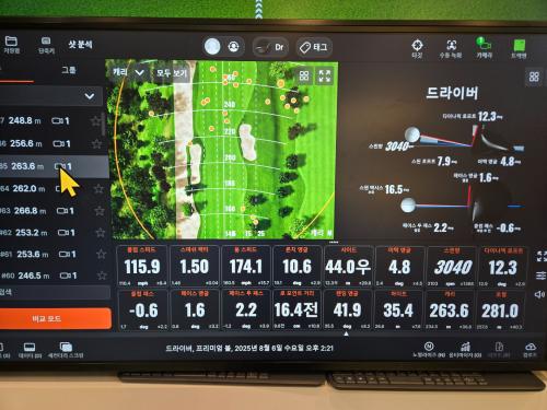 간략히 설명하면 파워는 좋으신데 파워가 비거리 + 백스핀으로 나누어서 사용되는데 지금은 비거리에 많이 사용되고 백스핀에 파워가 덜쓰이는 스윙 같아요.