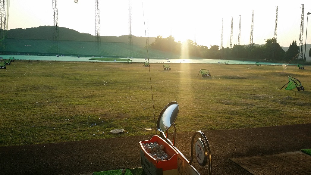 다행히 CC 에 딸린 연습장이라서 라운딩들 끝나는 시간이라 좌석은 널널합니다. 두근대는 두려운 마음에 앞이 어둡네요. 주위 둘러보니 앞쪽에는 얄싹한 스탠드백 걸쳐놓고 프로연습생같은 새까맣게 탄 얼굴로 어려보이는 친구들이 쩍쩍....소리내면서 아이언샷 연습중이고  더 멀리는 키 큰 아줌마같은 분에게 티칭프로 교습중이네요...흠.