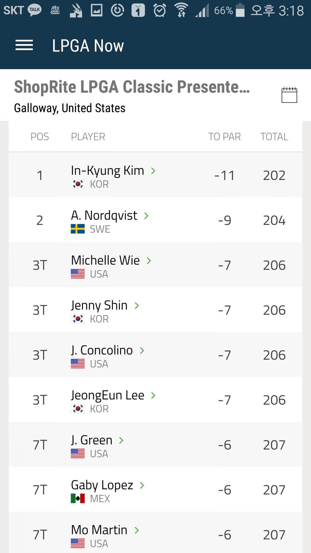 와 진짜 한국 선수들의 풀은 넓습니다. LPGA 상위권 선수들이 좀 부진하니 살짝 뒤에 있던 김인경을 냅다 우승을