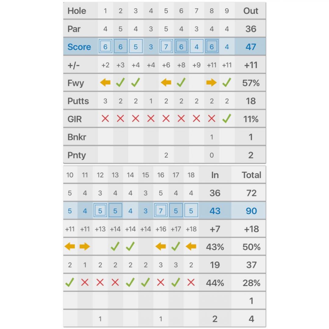 제가 느끼기에 멀리건 없이 인생 A게임을 했다고 생각하는데도 깨90을 못했어요 ㅠㅠ