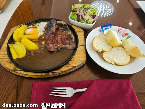 소고기스테이크와 빵 세트메뉴