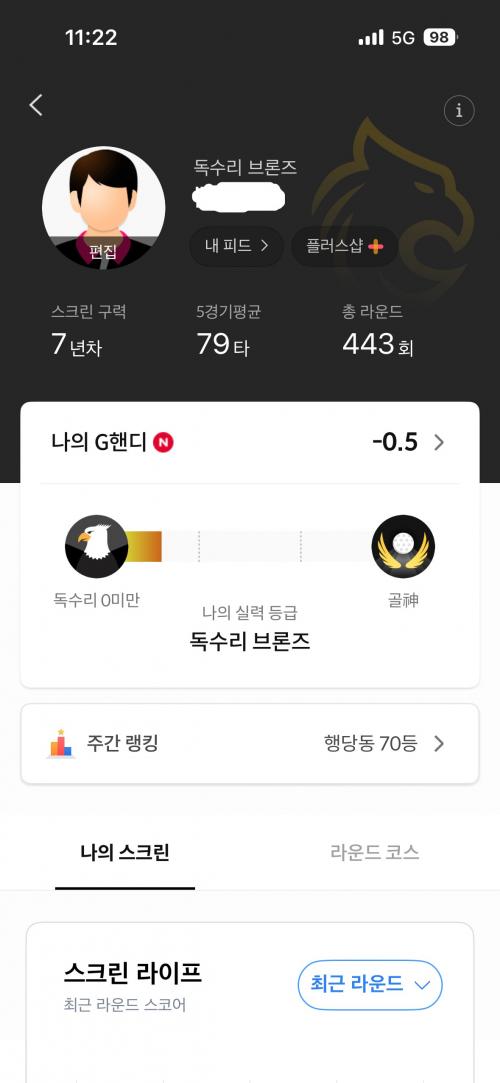 최근 몇년간 스크린 정말 많이 치긴 했는데 계속 매실버 정도 하다가 최근 스코어 좋아지면서 턱걸이로 독수리까지 달성했네요. ㅎㅎ