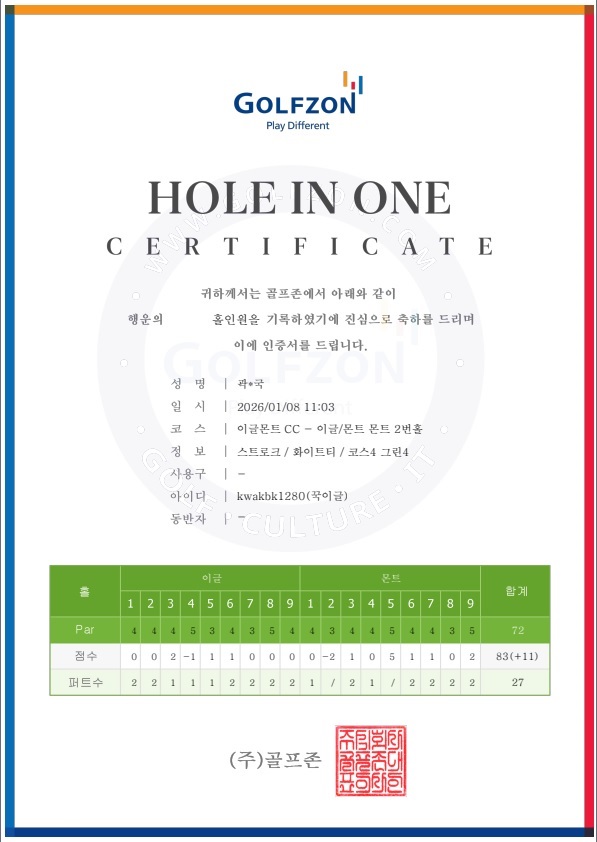 골포인 여러분들께도 홀인원의 기운이 함께 하시길...