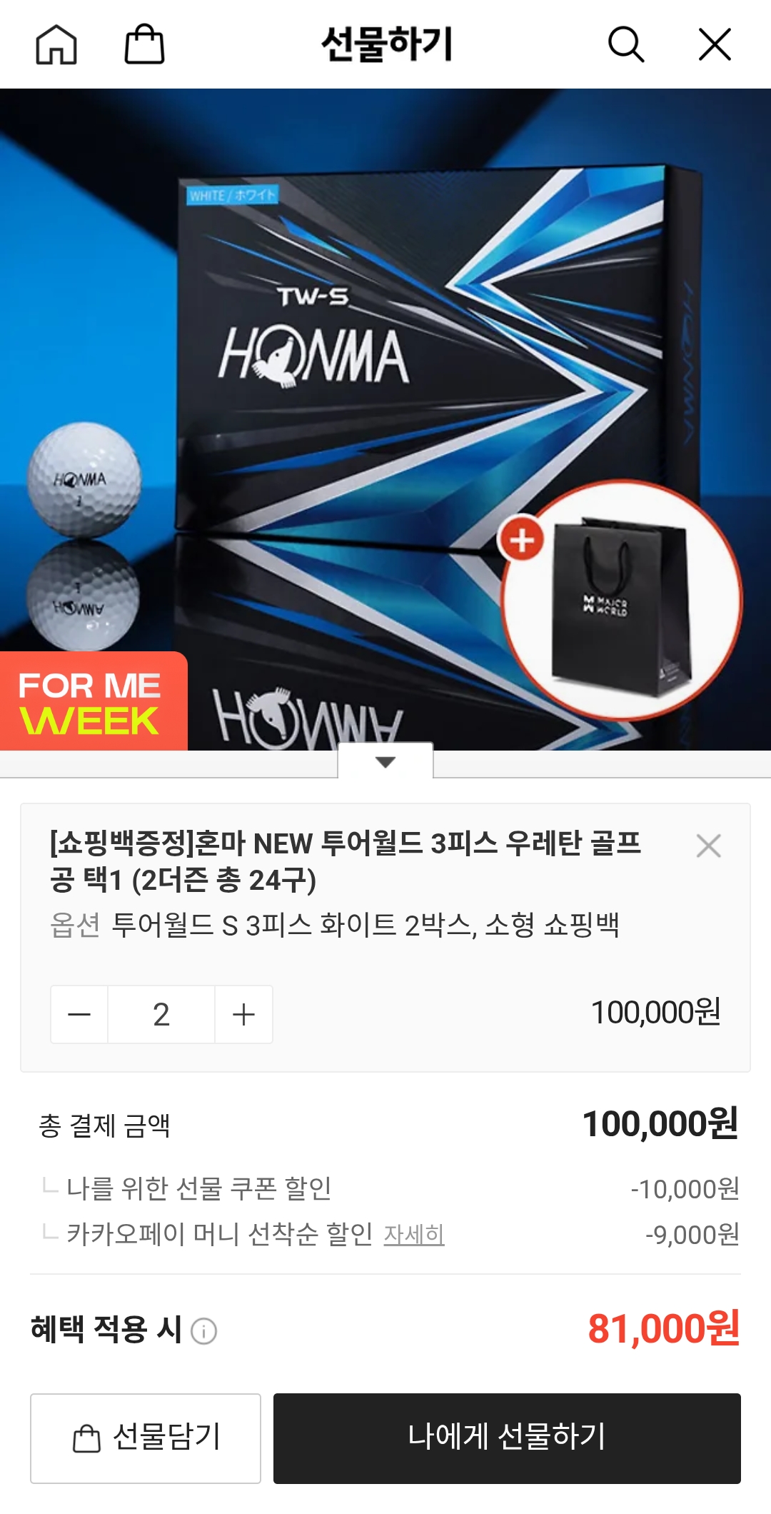 카톡 - 선물하기 -더블위크 할인쿠폰적용