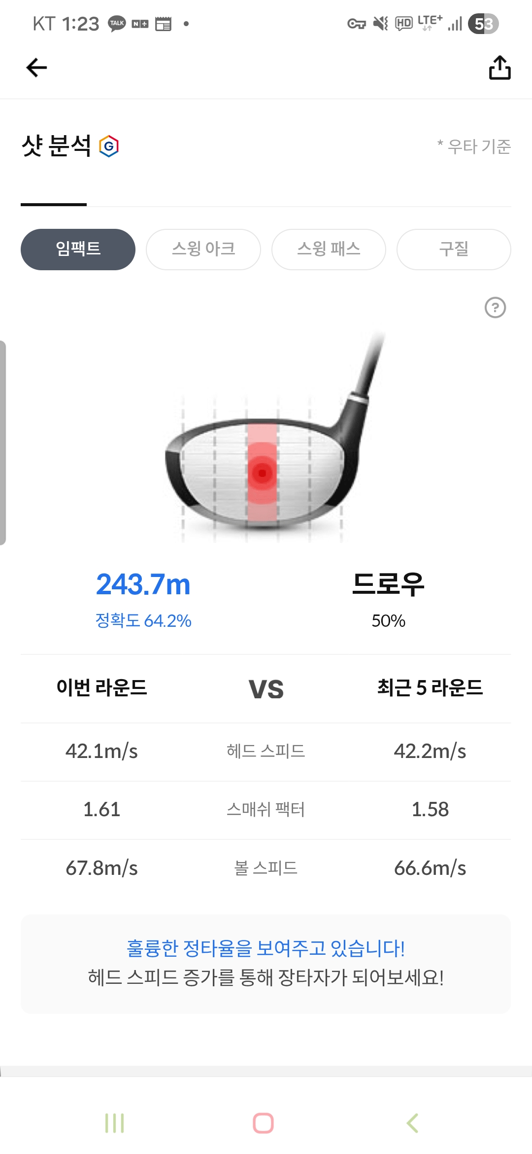 골프존 데이터 너무 신뢰하지마시고 대충이렇구나 정도 보시죠. 정확한 데이터는 트렉맨가서 보는게 정확하죠.
