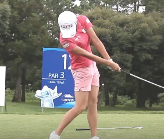 약간 얼리코킹식으로 코킹먼저 들어가고 김효주처럼 꺽어서 위로 올립니다.