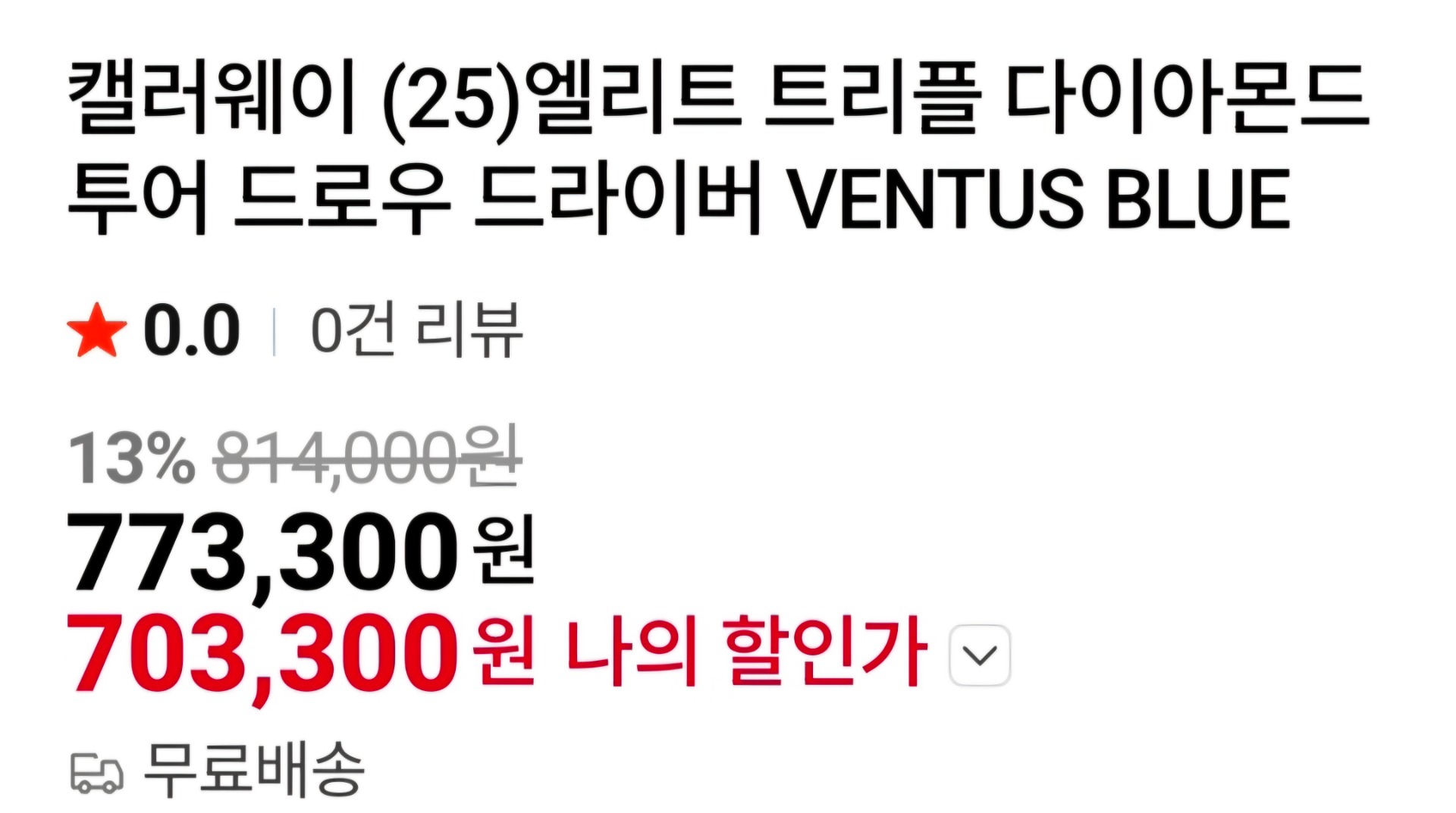 캘러웨이 엘리트 트다를 눈여겨보고 있었는데, 마침 제가 원하는 샤프트로 나온 상품이 있어서 혼자만 사기 억울(?)해서 정보 나눕니다. 엘리트와 벤투스 샤프트 조합으로 한국캘러웨이 정품이 이 가격이면 나름 괜찮은거 같구요, 네이버쇼핑에서 사야 이 가격인거 같습니다.