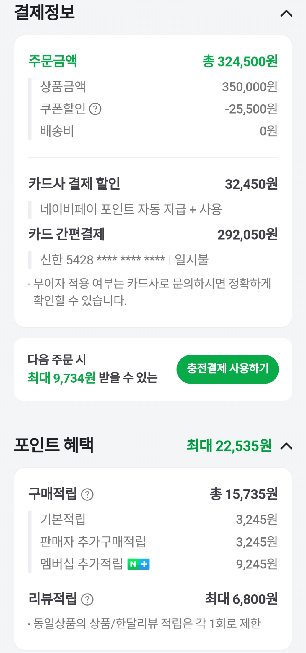 카드할인, 적립까지 하면 오프라인보다는 싸게 구입한듯 하네요.