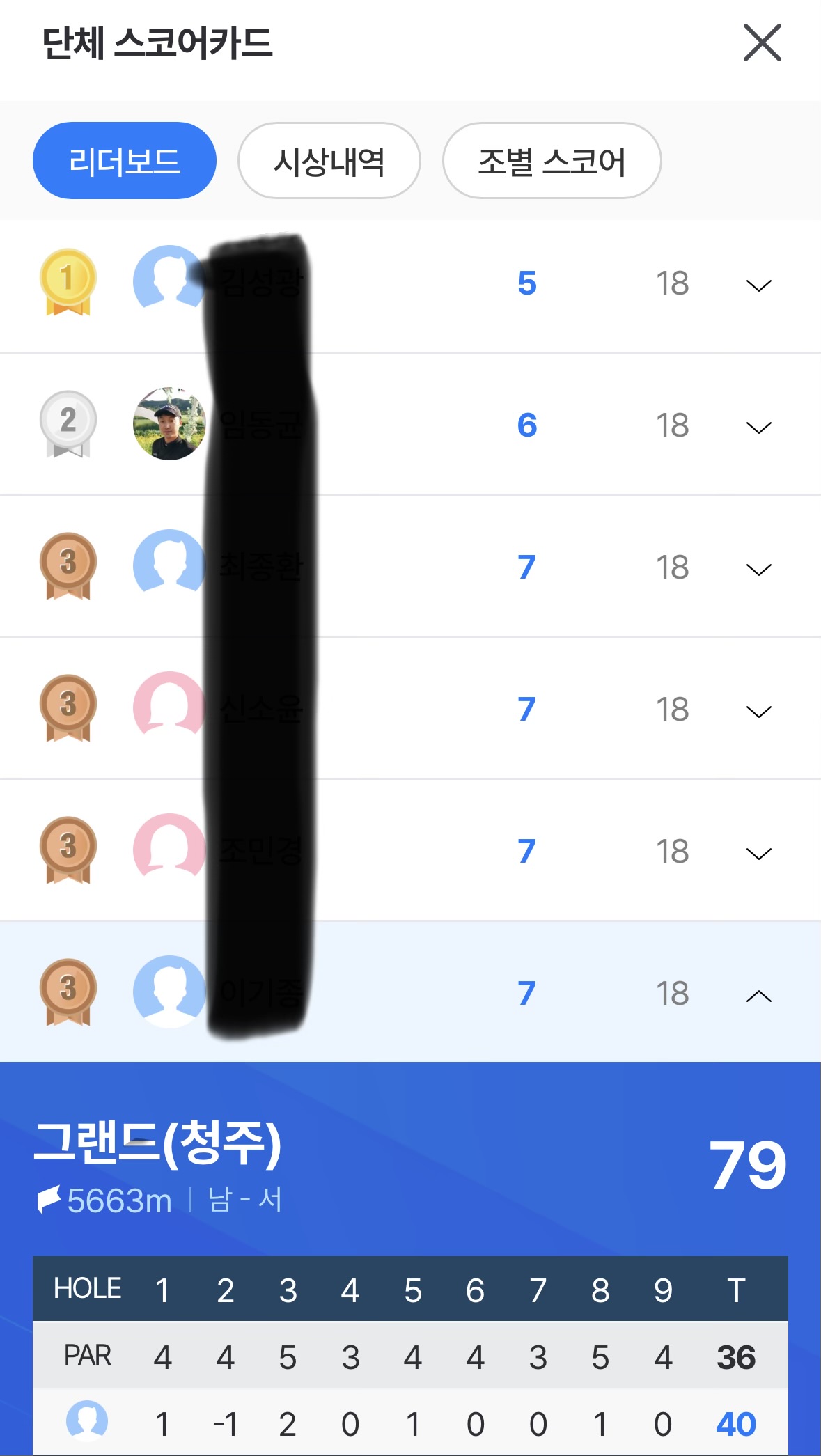 스마트 스코어 새로운 기능이더라구요. 그날 전체 라운딩 순위 나옵니다. |