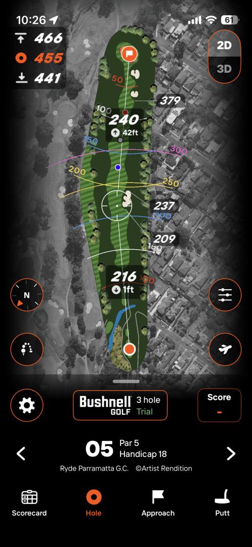 티샷이 215 정도 잘 나갔고, 세컨샷을 3번 우드로 쳐서 우측 벙커 전에 떨어뜨렸어요. 힘빼고 방향성에 중점을 두고 쳤었네요.