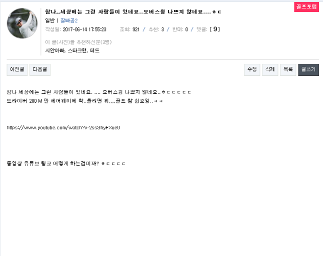 골프도 잘치고 게시판 글도 잘쓰려고 하면 ...